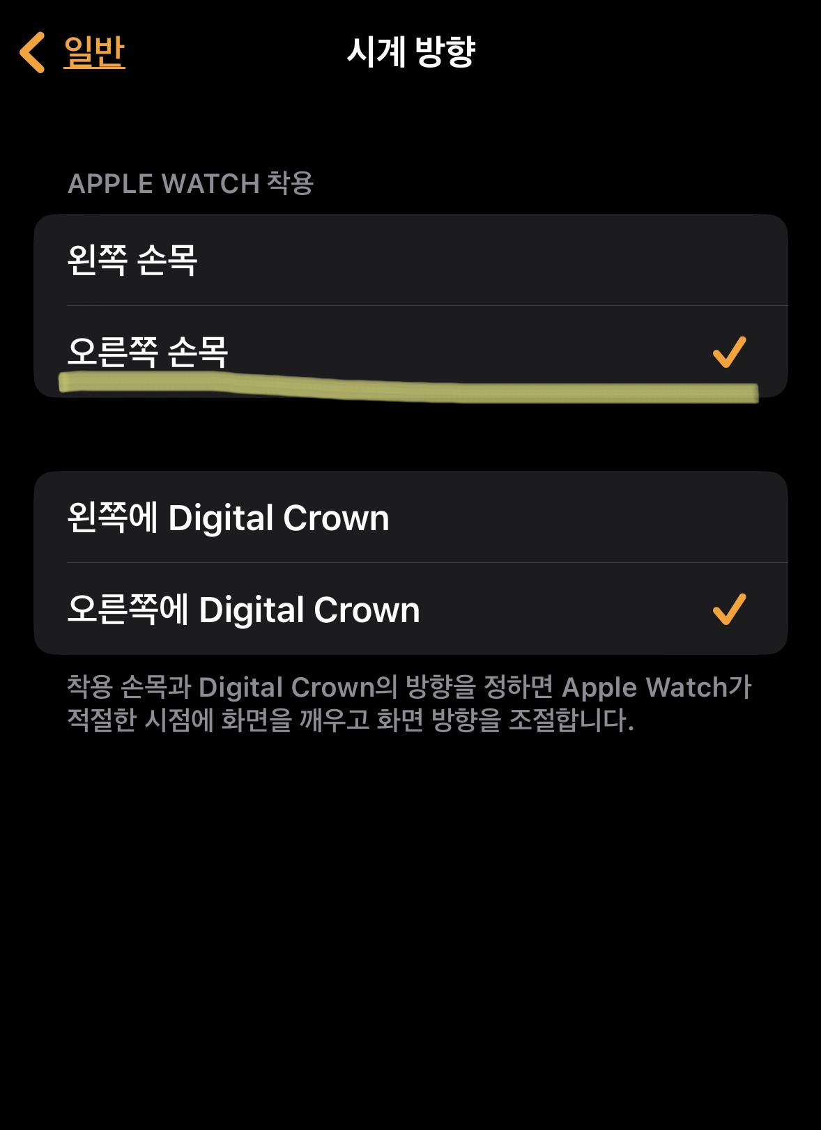 실제로 시계를 왼쪽에 차고 있고, 설정도 왼쪽 손목으로 해놓은 상태였다.