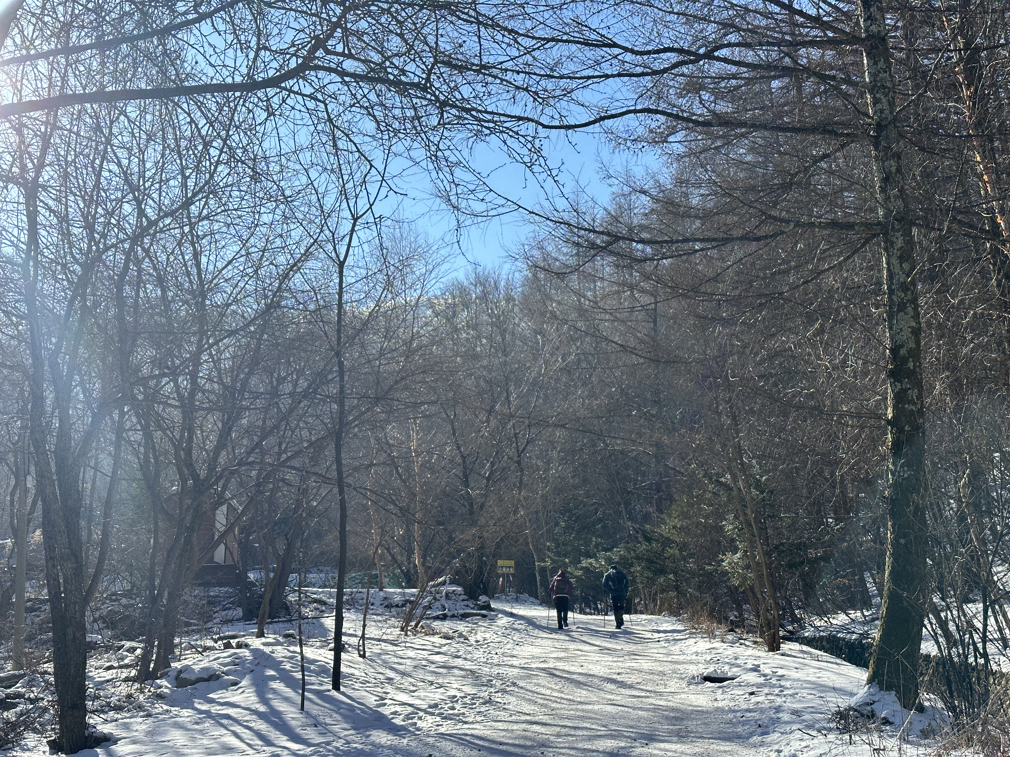 눈꽃산행을 잔뜩 기대하고 강원도까지 올라왔는데, 이날의 온도는 영상2도. 바람이 없어서 체감온도는 더 높았다.