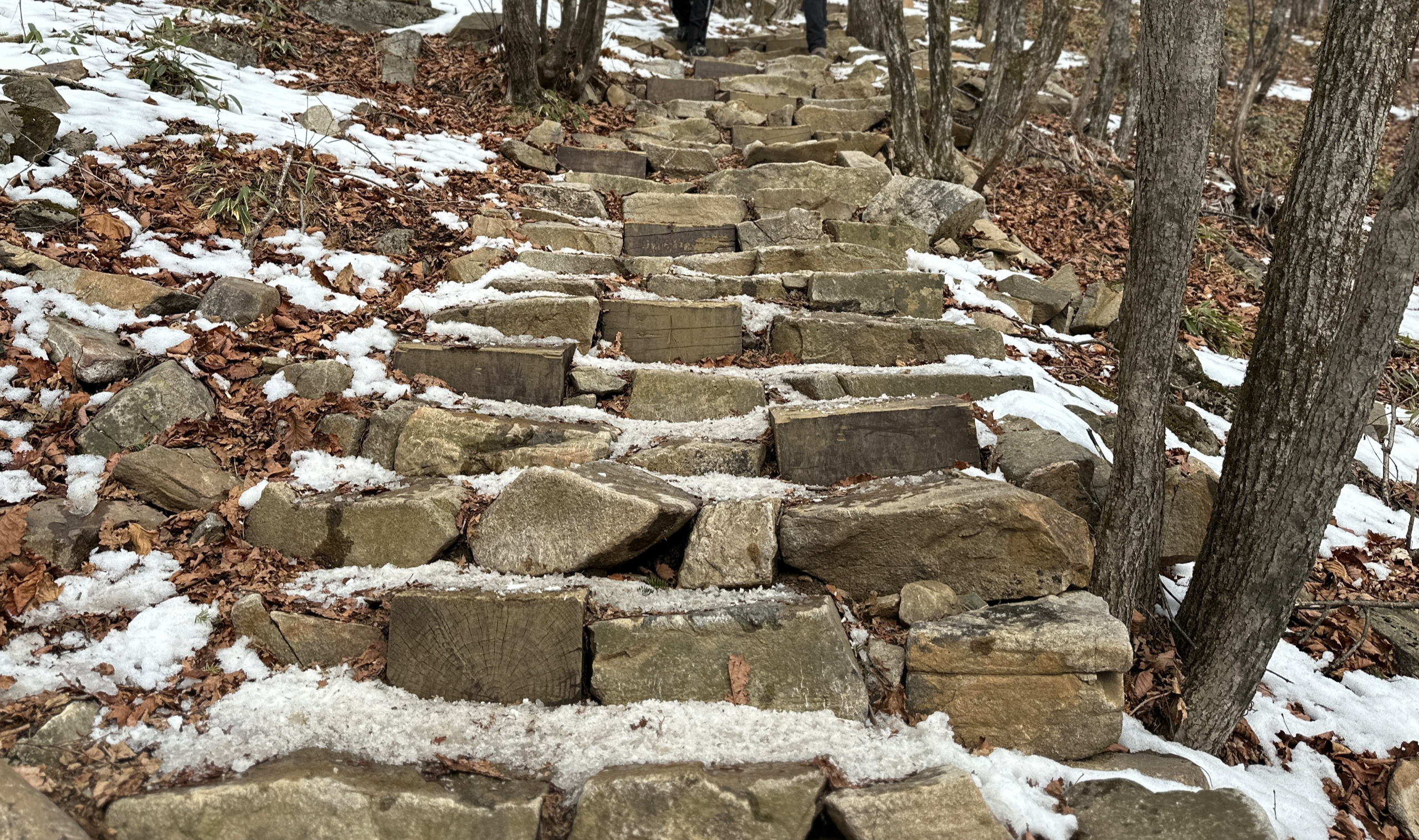 높이가 들쑥날쑥한 돌계단이라 허벅지가 펌핑되고 금방 숨이 차오른다.