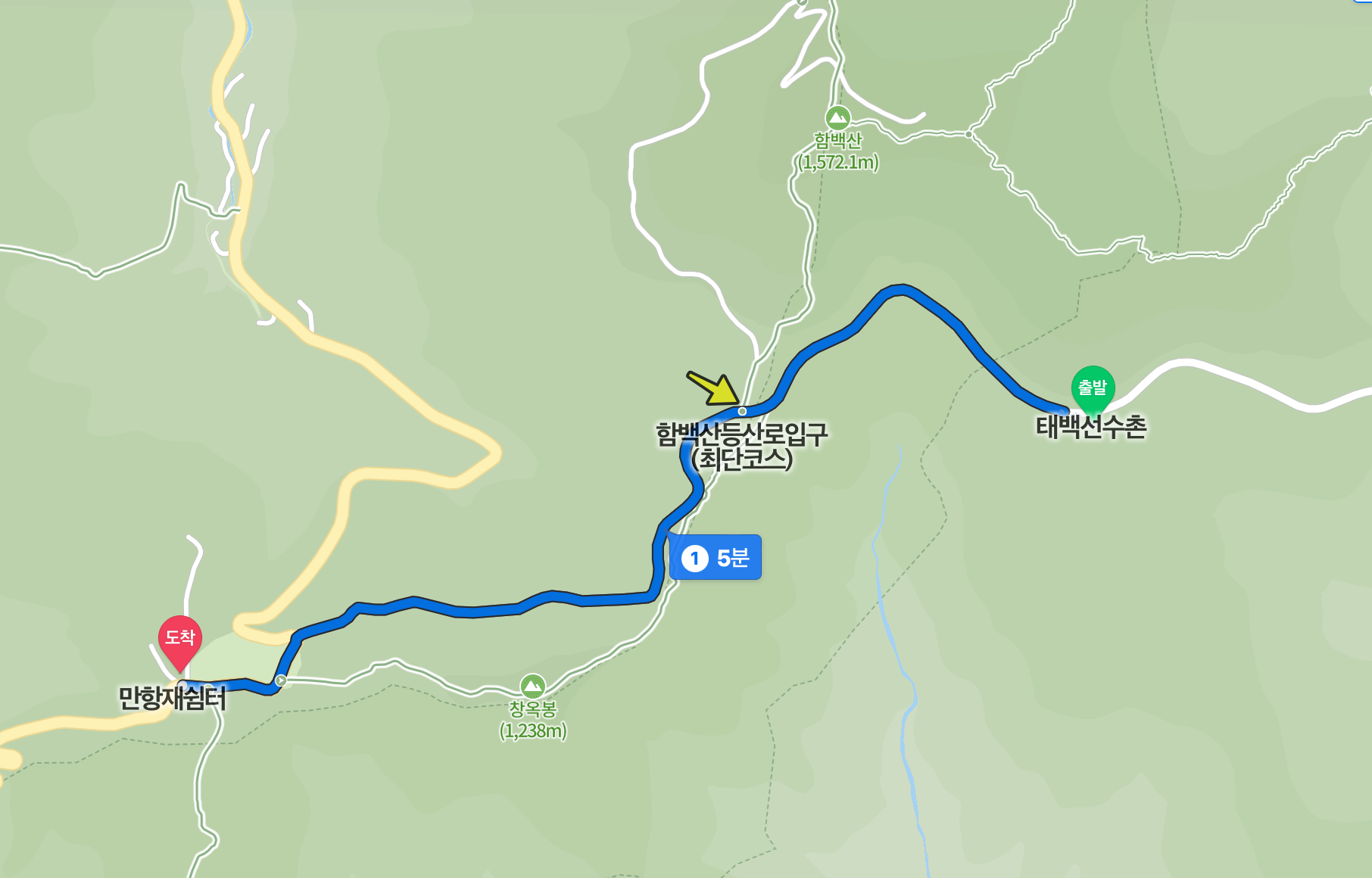 함백산 최다코스를 찾아볼 때 제일 헷갈렸던 게 주차정보였다. 만항재쉼터에서 직진을 더 해야한다는 글이 제일 많았는데, 우리는 태백 쪽에서 가서 그런지(?) 만항재 쉼터를 찍고 갔지만, 만항재 쉼터까지 가지 않아도 되었다. 태백선수촌을 지나 1km 만 지나면 들머리가 있다.